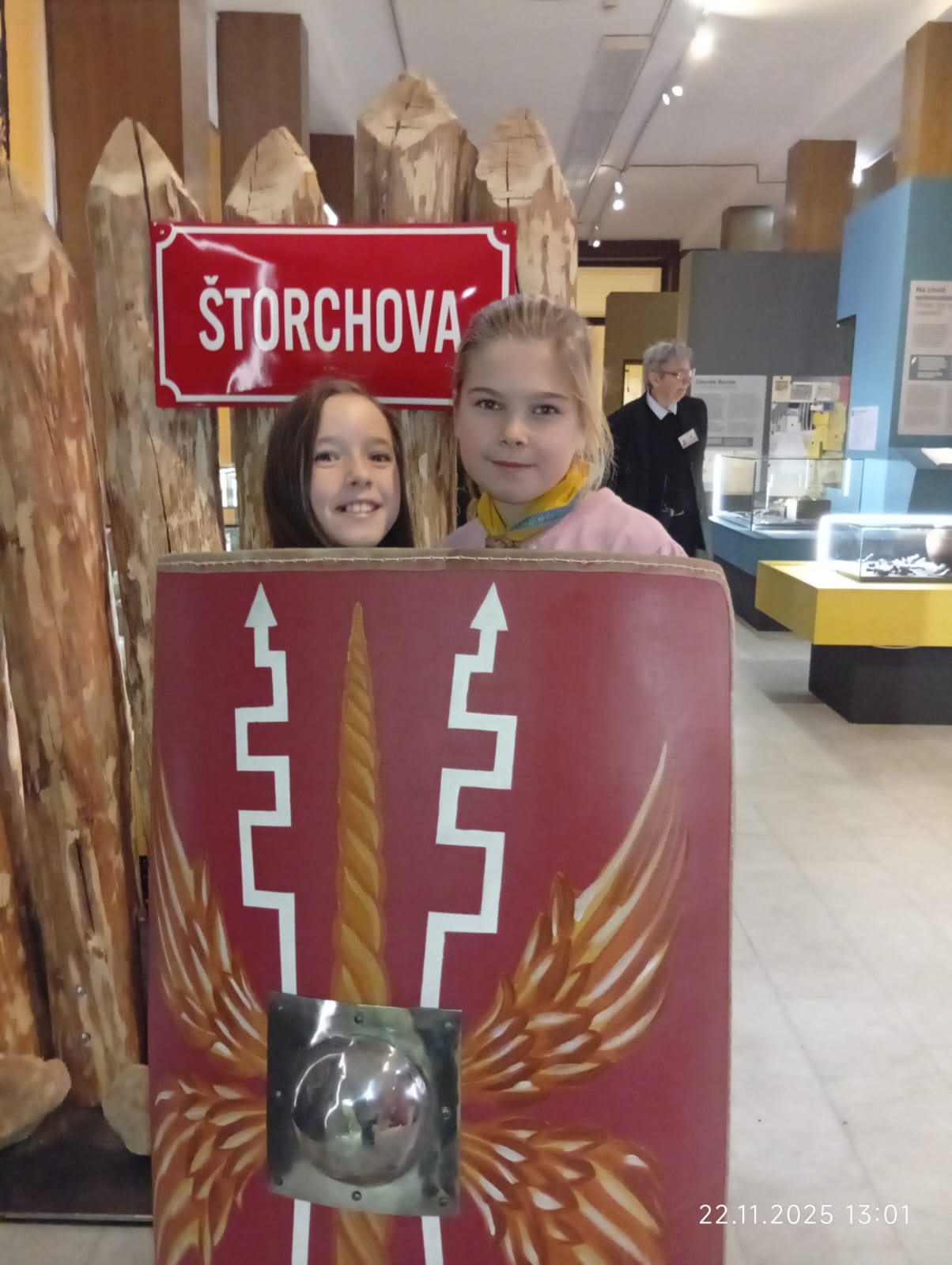 V sobotu 22. 11. 2025 se Benjamínci a Draci vydali na cestu vlakem do Prahy. Cílem výpravy bylo Národní muzeum. Benjamínci prozkoumali expozici „Dětské muzeum“, kde se děti hravou formou seznamují s činností muzea a jeho sbírkami. Překvapivě muzeum nezapomíná na to, že se děti potřebují i hýbat, takže si děti užily i prolézačky a házení míčků na interaktivní stěnu v expozici. Draci se vydali po stopách Eduarda Štorcha – spisovatele dobrodružných románů z období pravěku, učitele, amatérského archeologa a nadšeného skauta. Měli za úkol zjistit, jak se lidem žilo v jednotlivých obdobích pravěku. Mohli si vyzkoušet i dobové oblečení. Cestou zpět na nádraží jsme se ještě stihli protáhnout a zablbnout si na místním dětském hřišti. Už jsme seděli ve vlaku, když si malý Kubík vzpomněl, že nemá batoh. Do odjezdu vlaku zbývalo sedm minut, a tak se Míša s Broukem pokusili doběhnout zpět na hřiště a batoh najít. Celí udýchaní se vrátili za pět minut, i s batohem. Jojo, být vedoucím znamená mít i dobrou fyzickou kondici :-).